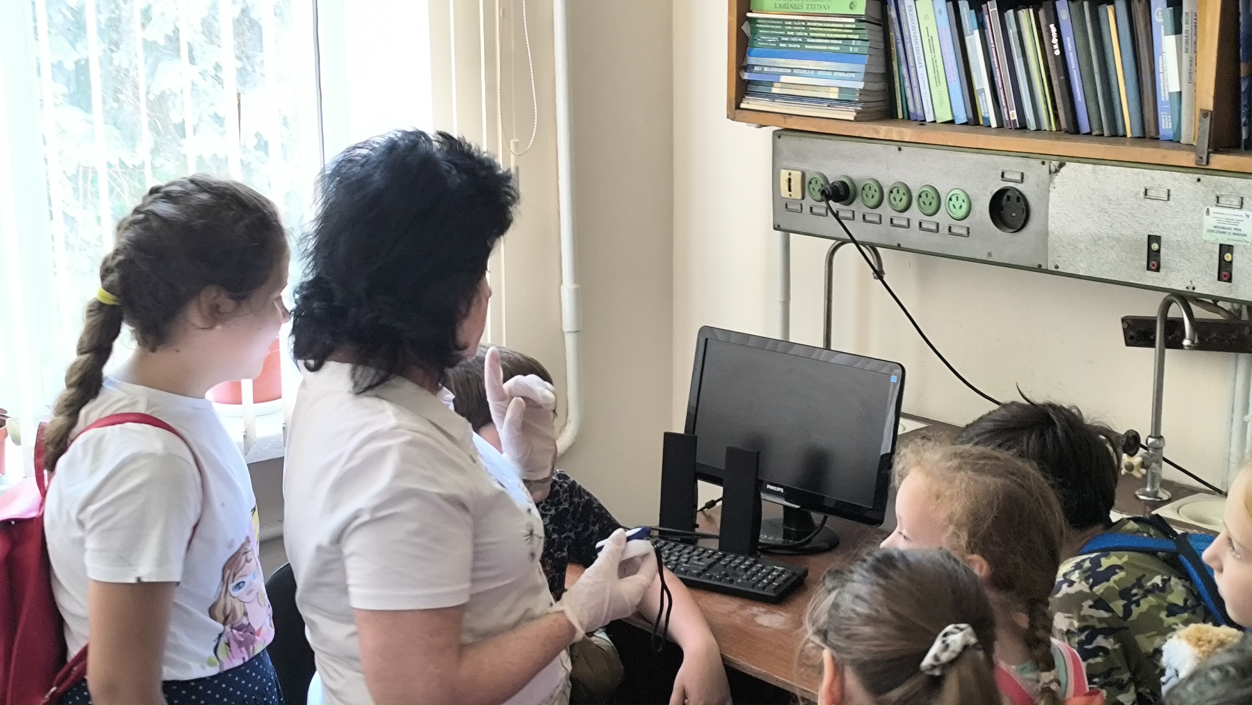 Dna Valentina Ciochină, doctor în științe biologice, conferențiar cercetător, șef laborator, le-a povestit copiilor despre istoria și activitatea Institutului.