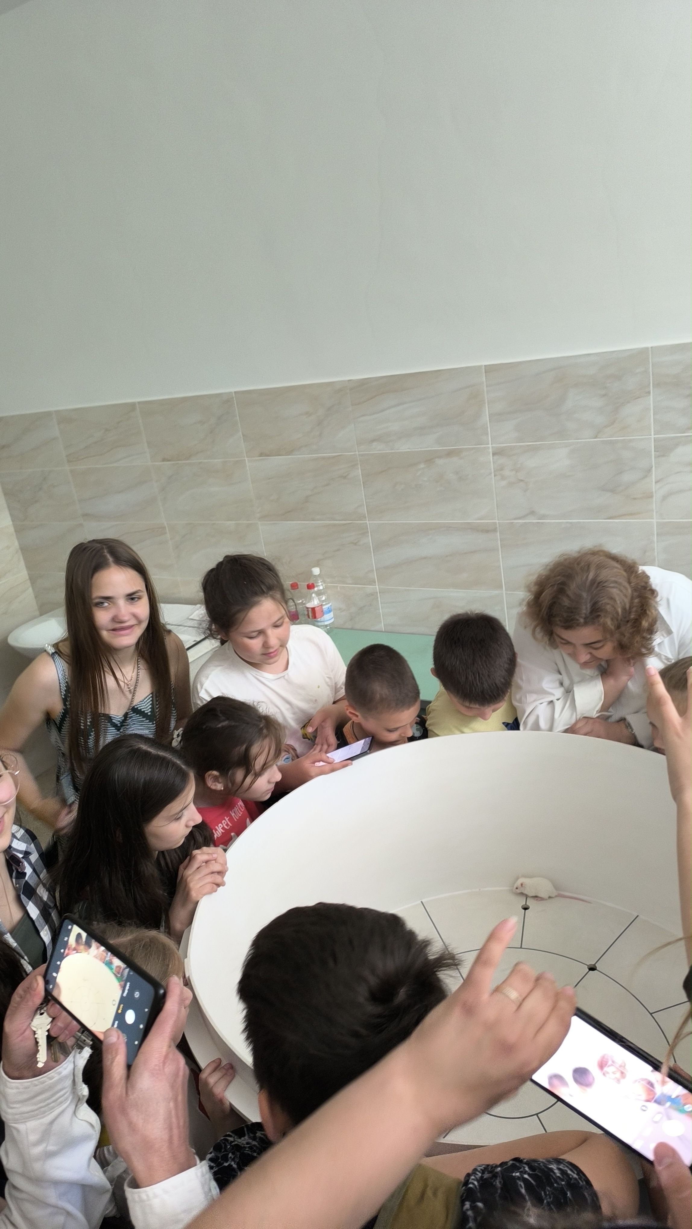 Copiii au făcut, de asemenea, cunoștință cu metoda de determinare a comportamentului animalelor de laborator „Câmpul deschis”, explicată de Dna Olga Bulat, cercetător științific.