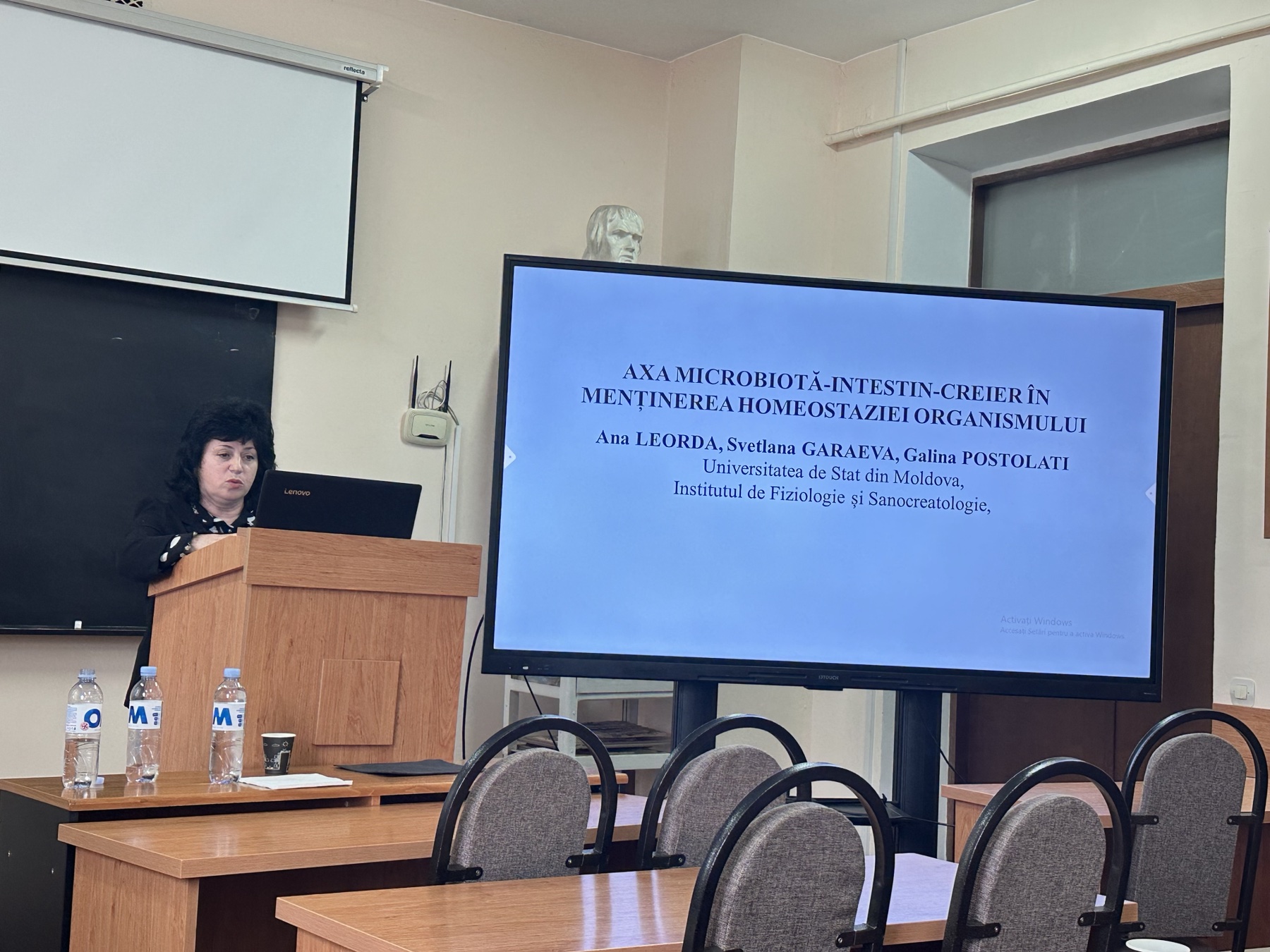 - Leorda Ana, doctor în științe biologice, conferențiar cercetător, tema raportului: „Rolul relației bidirecționale dintre structurile cerebrale și microbiota intestinală în menținerea homeostaziei organismului”